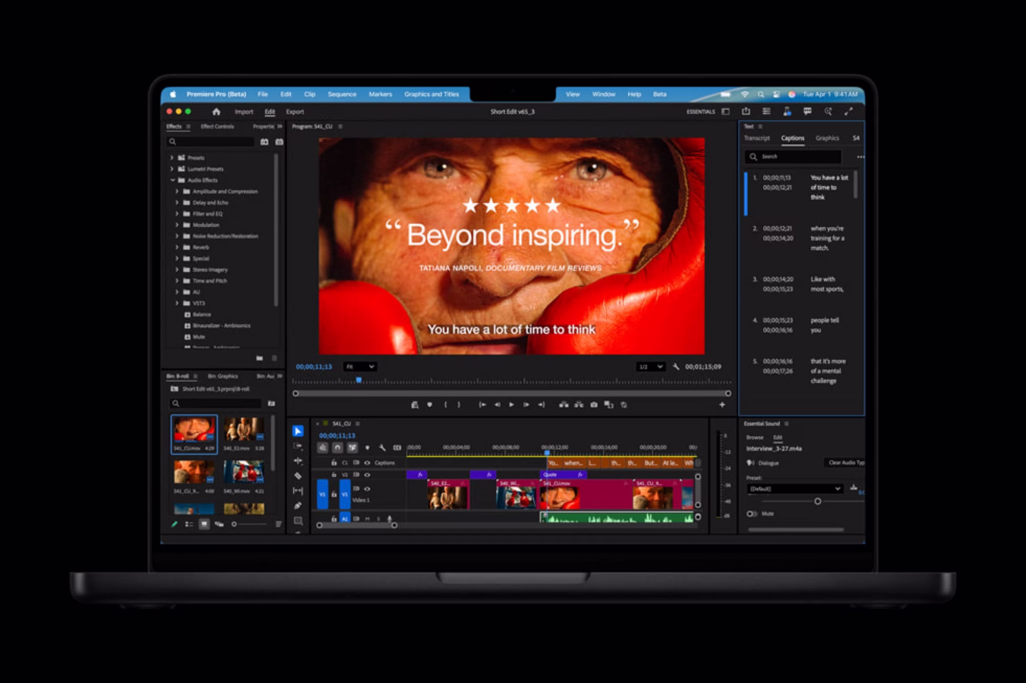 Selain itu, prestasi kecerdasan buatan (AI) turut dipertingkatkan sehingga 3.5x ganda, termasuk keupayaan suntingan video AI yang 1.8x lebih pantas menggunakan Topaz Video dan proses rendering 3D 1.7x lebih laju dalam Blender. Prestasi SSD juga dikatakan dua kali lebih pantas. Dengan cip baharu ini, Apple menjanjikan kecekapan tenaga yang lebih baik, membolehkan MacBook Pro ini beroperasi sehingga 24 jam dengan sekali cas.