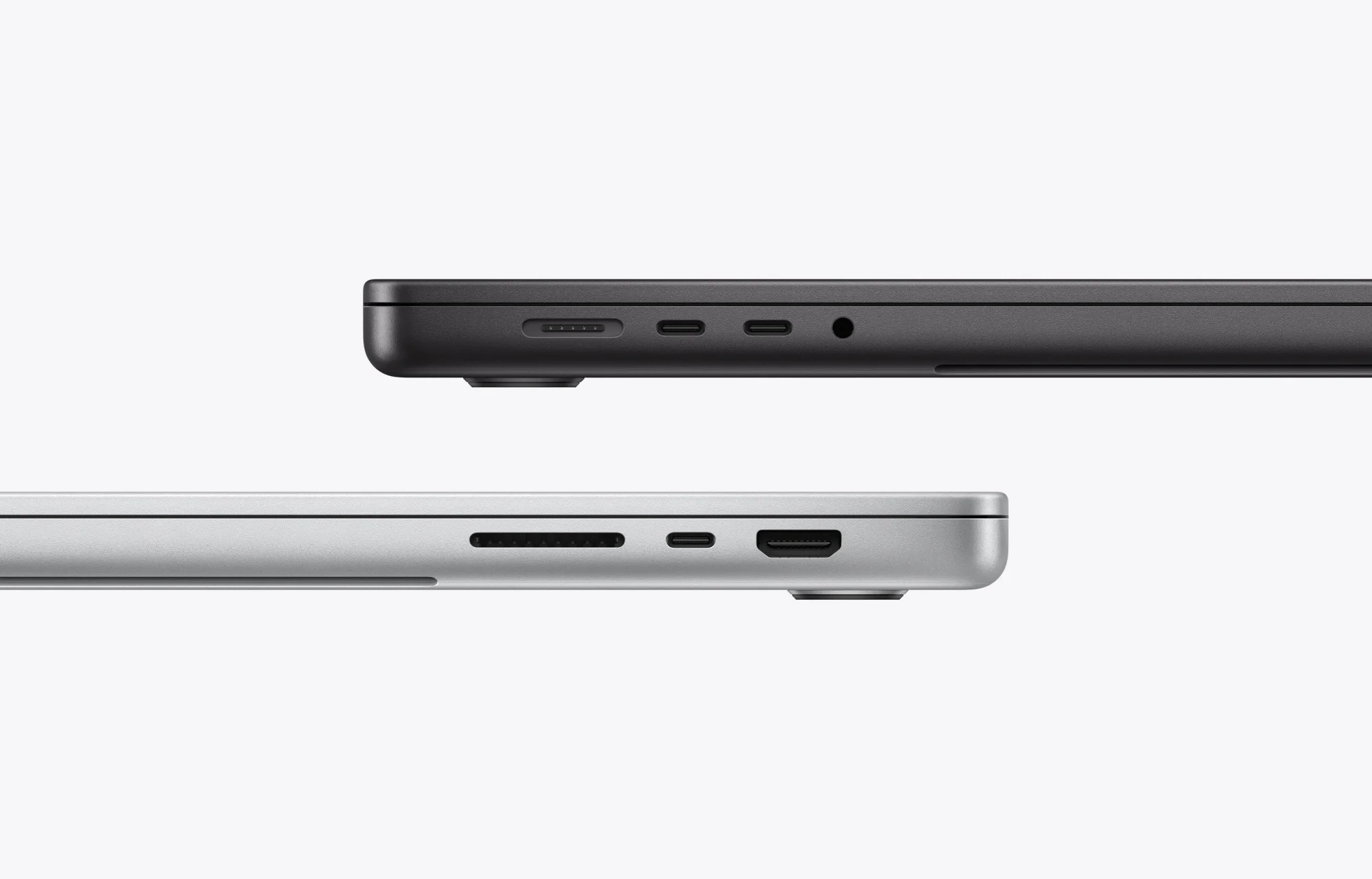 | Port & Antaramuka | 3x Thunderbolt 5, port HDMI (sehingga 8K), slot kad SDXC, MagSafe 3 | 3x Thunderbolt 5, port HDMI (sehingga 8K), slot kad SDXC, MagSafe 3 |