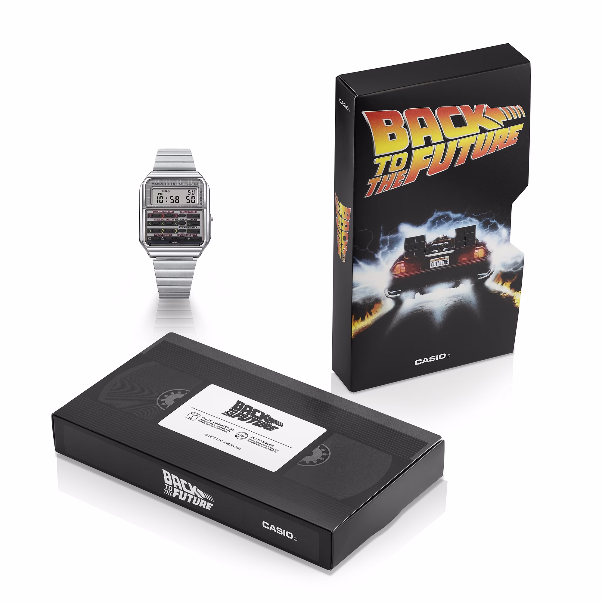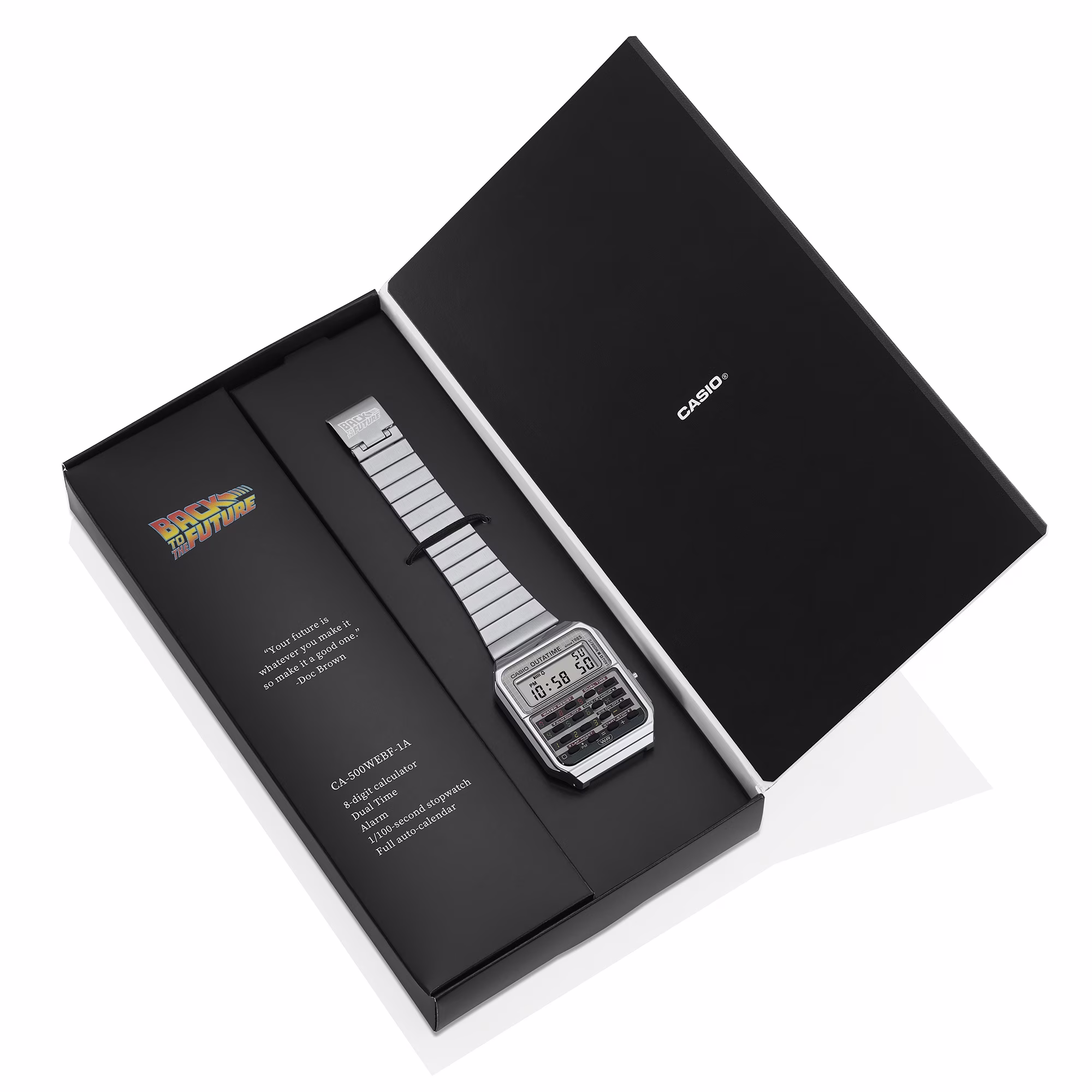 Casio telah mengumumkan pelancaran jam tangan kalkulator edisi khas, CA-500WEBF, sempena ulang tahun ke-40 filem ikonik Back to the Future. Dihasilkan dengan kerjasama Universal Products & Experiences (UP&E), jam tangan edisi terhad ini memberi penghormatan kepada filem keluaran 1985 itu dan jam tangan Casio klasik yang dipakai oleh watak utamanya, Marty McFly.