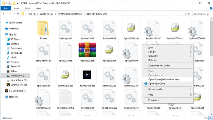 - Telusuri ke laluan folder yang anda ingin jejak, sambil memegang kekunci SHIFT pada papan kekunci, klik kanan pada tetingkap berkenaan dan seterusnya pilih Open PowerShell window here.