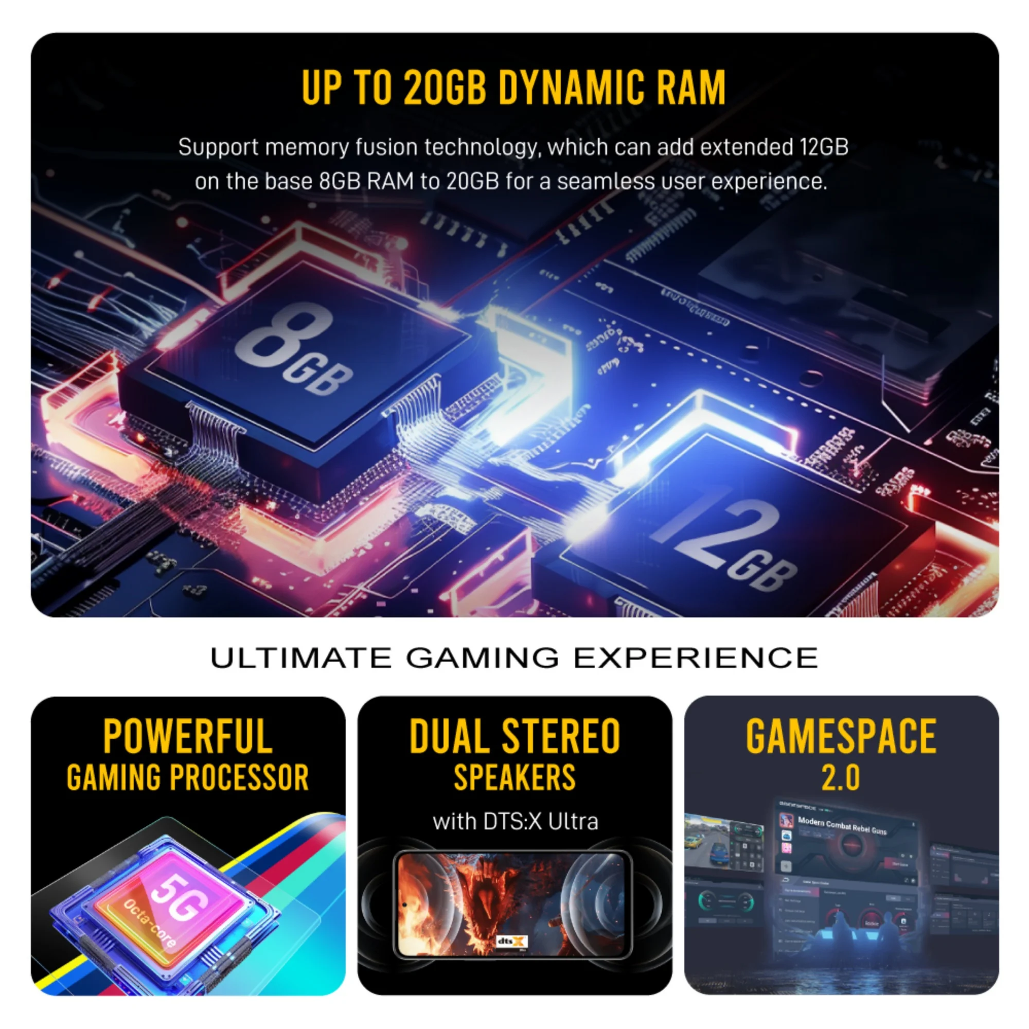 Lain-lain ciri yang turut melengkapkan telefon pintar ini termasuklah pengimbas cap jari, struktur pelesapan haba berbilang laposan dengan bahan termal superkonduktor, ketersambungan Wi-Fi, NFC, dan Bluetooth 5.3. Kamera di belakangnya terdiri daripada satu kamera utama 50MP, dan kamera berkedalaman 2MP. Manakala di hadapannya pula disediakan kamera 16MP.