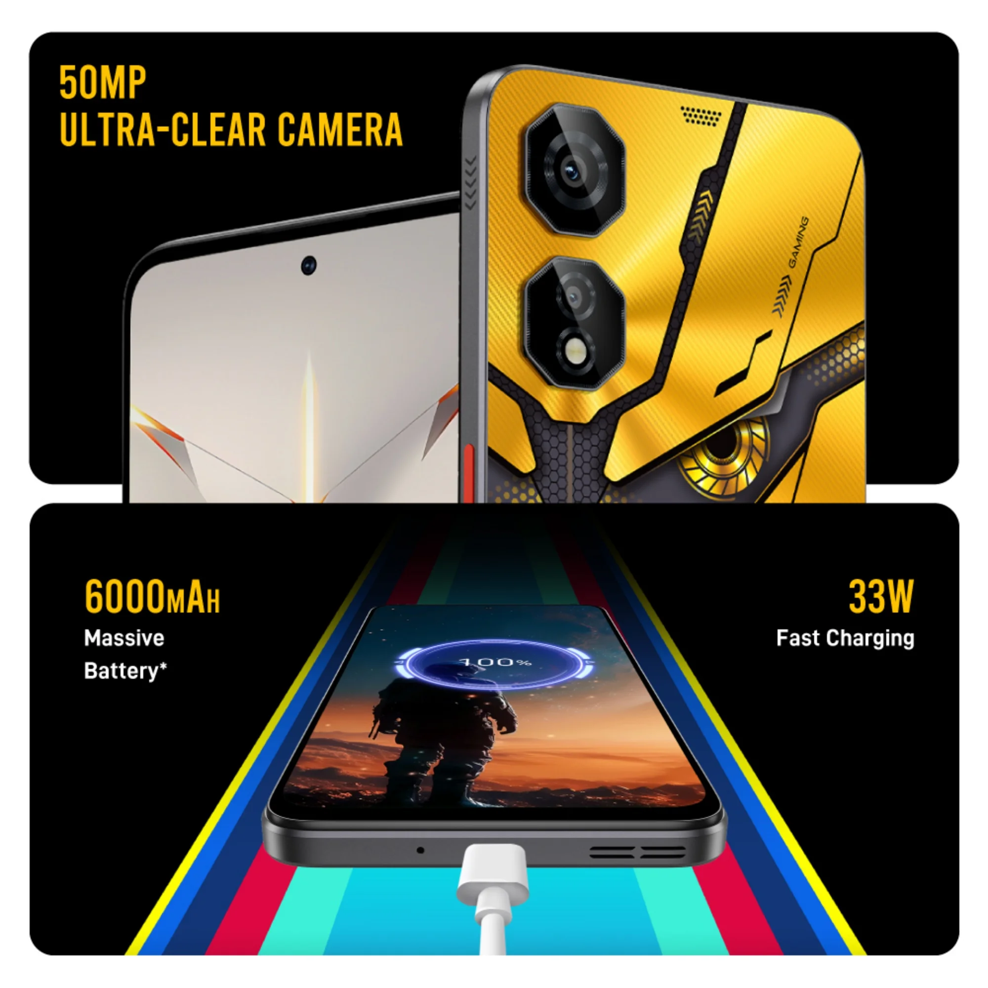 Corak rekaan berinspirasikan ‘mecha’ pada permukaan belakangnya juga masih lagi dikekalkan dari model sebelum ini dengan sedikit perbezaan. Menurut laman web rasminya, telefon pintar ini akan hadir dengan tiga pilihan warna iaitu Sunfire Yellow, Frost Silver, dan Storm Gray.