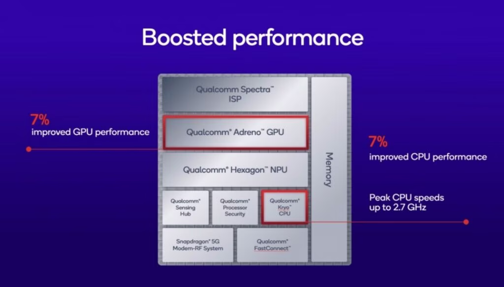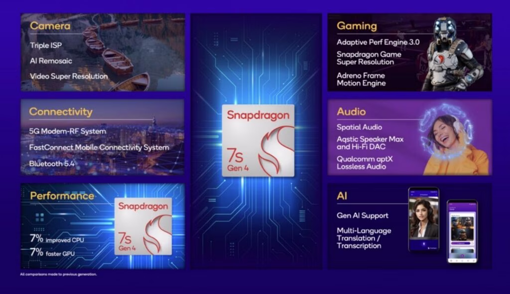 Menurut Qualcomm, Snapdragon 7s Gen 4 membawakan peningkatan prestasi tujuh peratus untuk GPU Adreno dan CPU Kryo di dalamnya. Pemprosesan ini juga menaikkan kelajuan klok tertinggi CPU kepada 2.7GHz, berbanding 2.5GHz pada generasi sebelumnya.