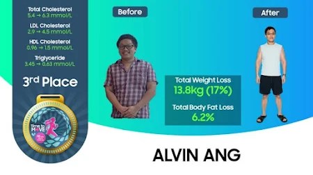 - Alvin Ang, pemenang tempat ketiga, juga mencapai pengurangan berat badan sebanyak 17% dan 6.2% pengurangan lemak badan. Beliau memenangi pakej percutian 2 hari, 1 malam untuk dua orang di Lost World of Tambun.