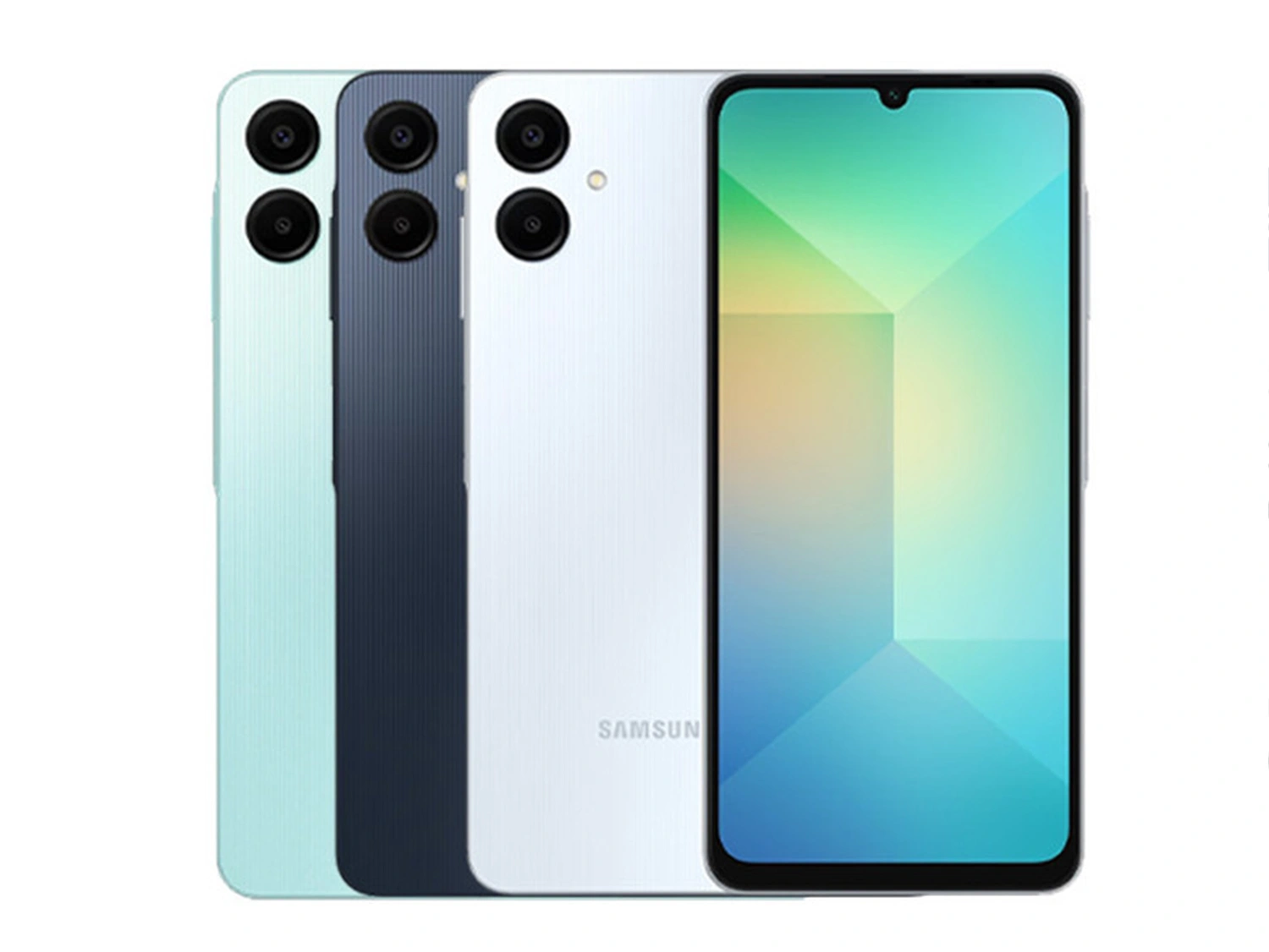 Galaxy A06 menampilkan paparan bertakuk LCD 6.7-inci 720p dengan kadar penyegaran semula 60Hz. Di dalamnya terdapat pemprosesan yang sama dengan Galaxy A05 sebelum ini – MediaTek Helio G85 bersama-sama RAM 4GB, storan dalaman 128GB dan slot kad mikroSD.
