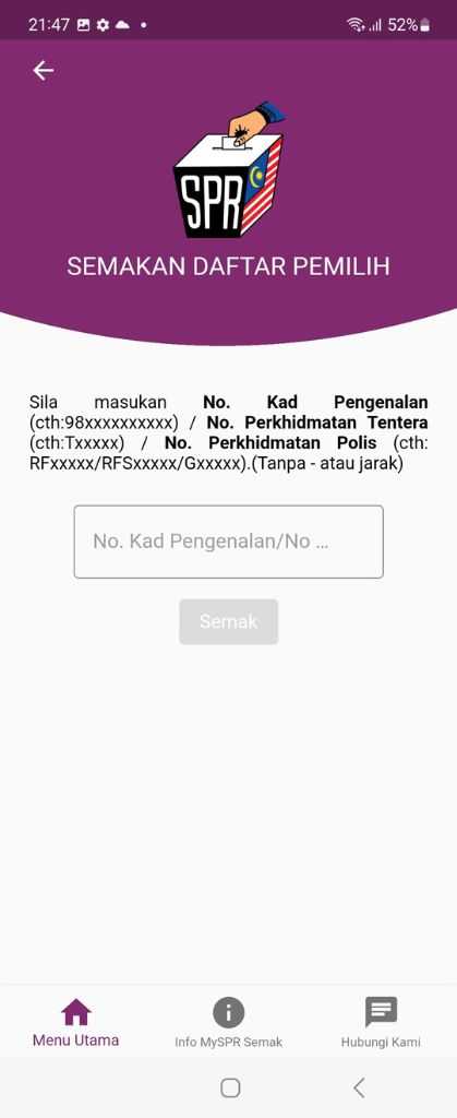 Membuat Semakan Daftar Pemilih dengan menggunakan Aplikasi MySPR Semak