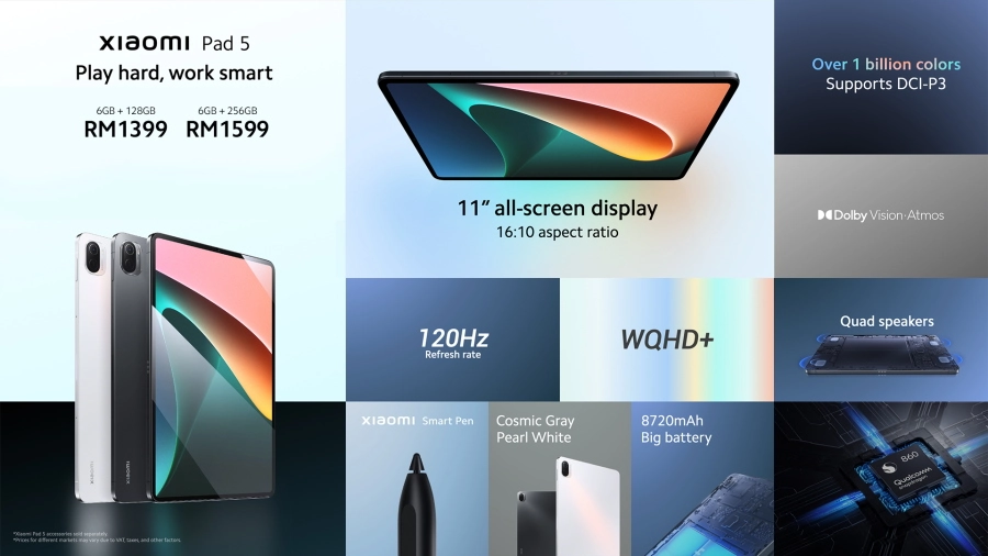 Untuk pasaran Malaysia, Xiaomi Pad 5 didatangkan bersama-sama pengecas 22.5W, berbeza dengan model di China yang hadir dengan pengecas 33W. Selain itu, model yang dilancarkan di Malaysia ini juga merupakan varian Wi-Fi sahaja.