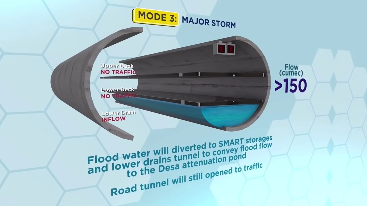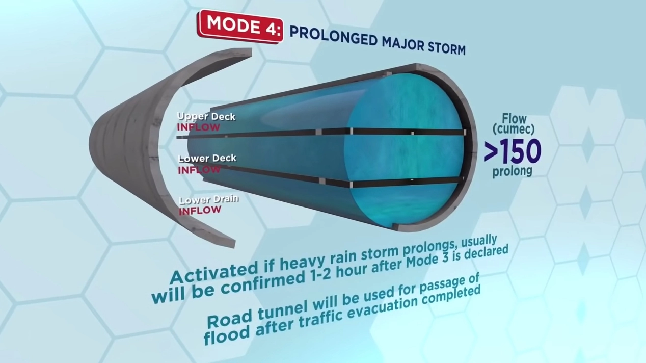 Bagaimanapun, ketika keadaan hujan lebat berterusan dan selepas 1-2 jam Mod 3 diaktifkan, laluan trafik terowong akan ditutup. Keseluruhan terowong akan digunakan sepenuhnya untuk tujuan lencongan air selepas pengosongan laluan trafik dilakukan.