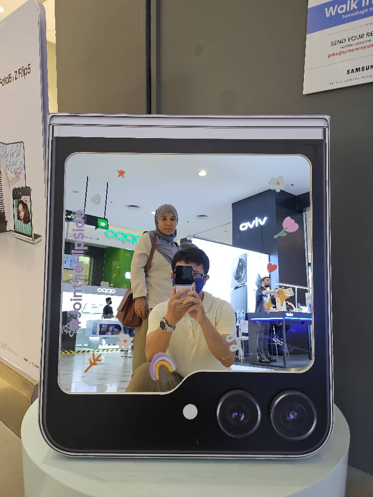 Berbalik dengan keunikan telefon pintar ini, Galaxy Z Flip 5 sememangnya telah menjadi salah satu peranti terbaik untuk mengambil swafoto secara bersendirian mahupun berkumpulan. Tambahan pula, Cover Screen yang unik padanya memudahkan lagi tujuan tersebut.