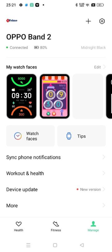 Tab yang terakhir, Manage pula lebih kepada memaparkan papan pemuka bagi menguruskan keseluruhan aplikasi HeyTap Health dan juga peranti boleh pakai yang dipautkan. Menerusinya anda boleh menukar-nukar muka jam pada OPPO Band 2 mengikut citarasa dengan amat mudah.