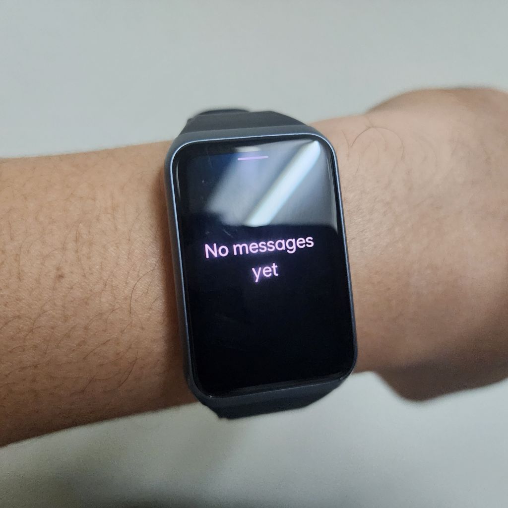 Gestur sebelah bawah pula memberikan akses untuk membaca secara ringkas Mesej dan Notifikasi yang dihantar ke telefon anda dan juga jam tangan kecergasan pintar ini. Sebelah kiri pula menunjukkan sejumlah aplikasi yang boleh diakses yang anda boleh gunakan dari senaman, jam randik hinggalah ke kawalan muzik dan peringatan untuk minum air.
