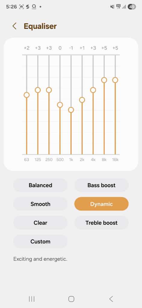 Pada pandangan kami, kualiti bunyinya dikirakan sebagai baik untuk kelasnya, dengan hujung bass yang cukup mantap tanpa mengaburkan mid dan treble. Codec yang disokong termasuk AAC, SBC, dan SSC (Samsung Seamless Codec) dioptimumkan untuk peranti Galaxy. Ia dapat memastikan penghantaran audio lancar dan kualiti tinggi dalam ekosistem Samsung.