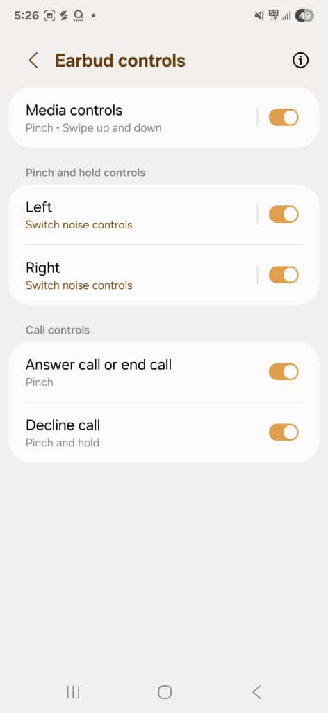 Kawalan pada Buds3 FE direka dengan gerak isyarat yang mudah dan intuitif. Pengguna boleh memicit (pinch) sekali untuk main/jeda, dua kali untuk lagu seterusnya, tiga kali untuk lagu sebelumnya. Untuk pelarasan kelantangan, sapukan (swipe) ke atas atau ke bawah pada permukaan “Blade” untuk memberikan kawalan tepat tanpa perlu membuka telefon pintar.