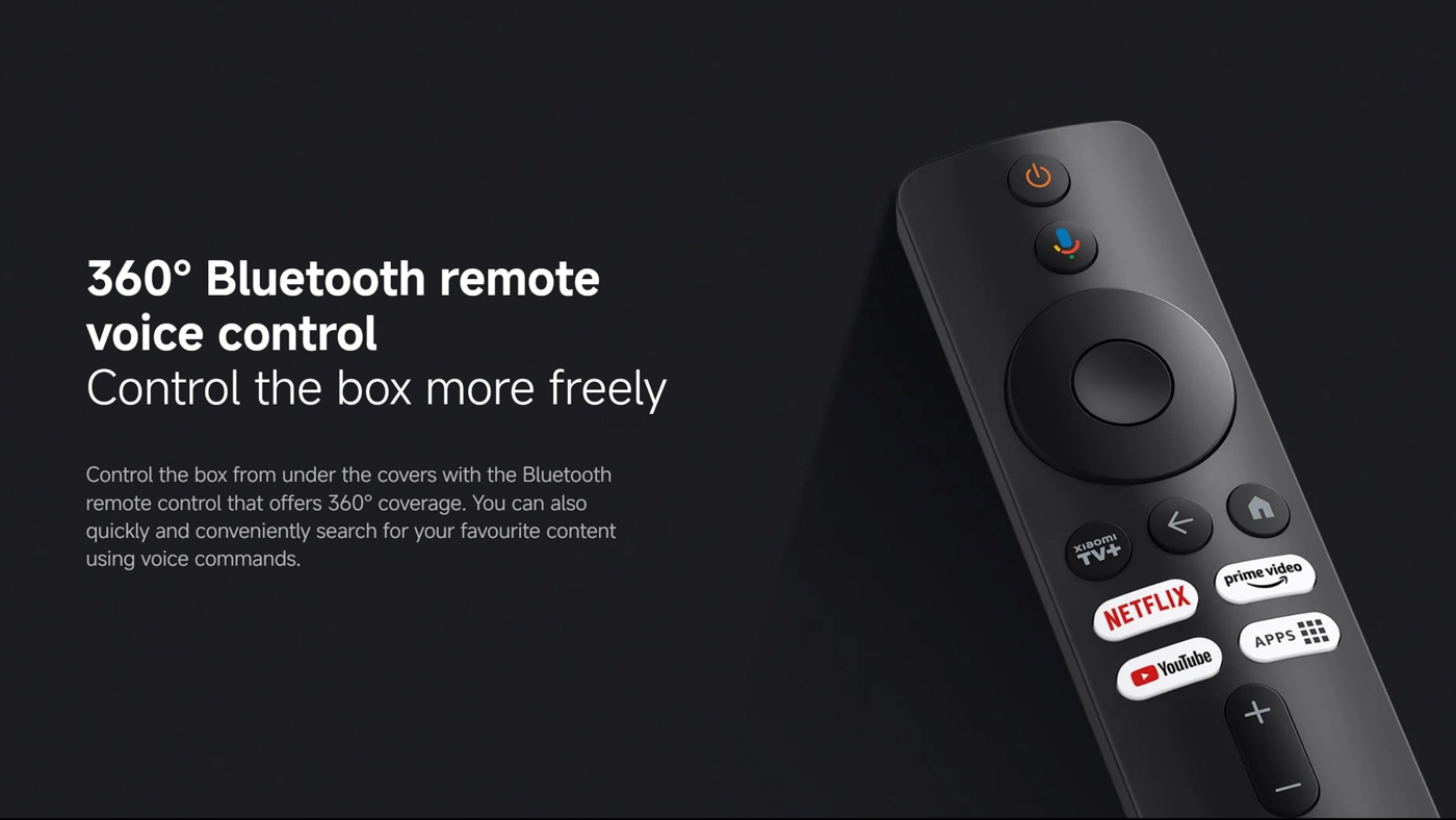Kawalan Xiaomi TV Box S boleh dilakukan dengan alat kawalan jauh Bluetooth yang disediakan yang turut menyokong kawalan bersuara. Kotak TV ini juga hadir dengan perkhidmatan penstriman percuma Xiaomi TV+ yang menawarkan saluran siaran langsung tanpa langganan.
